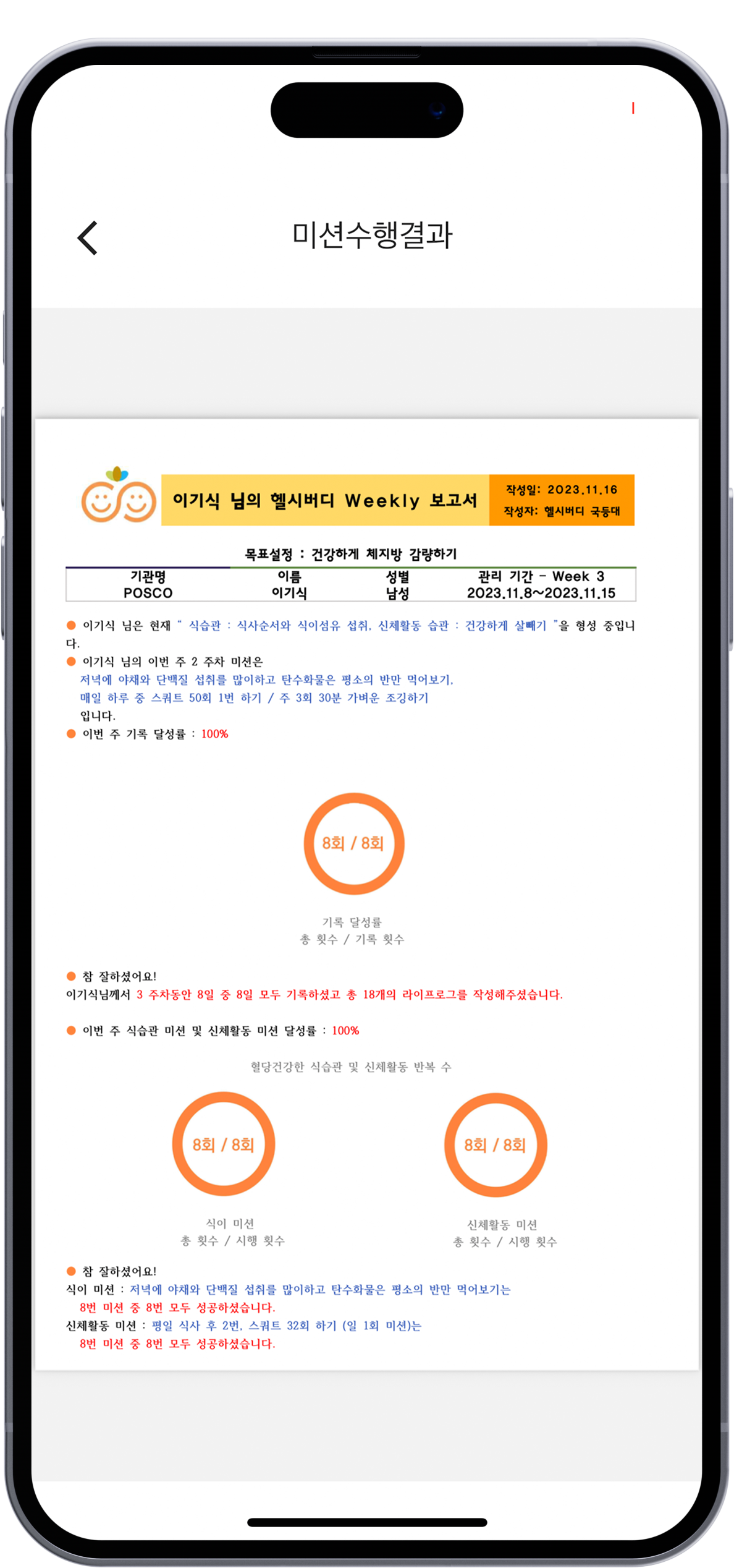 헬시버디 서비스 여정동안의 모든 고객님의 식이, 신체활동